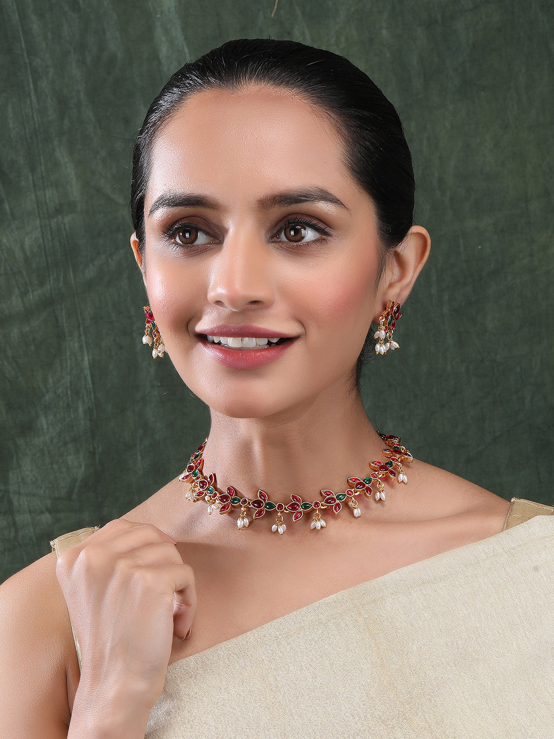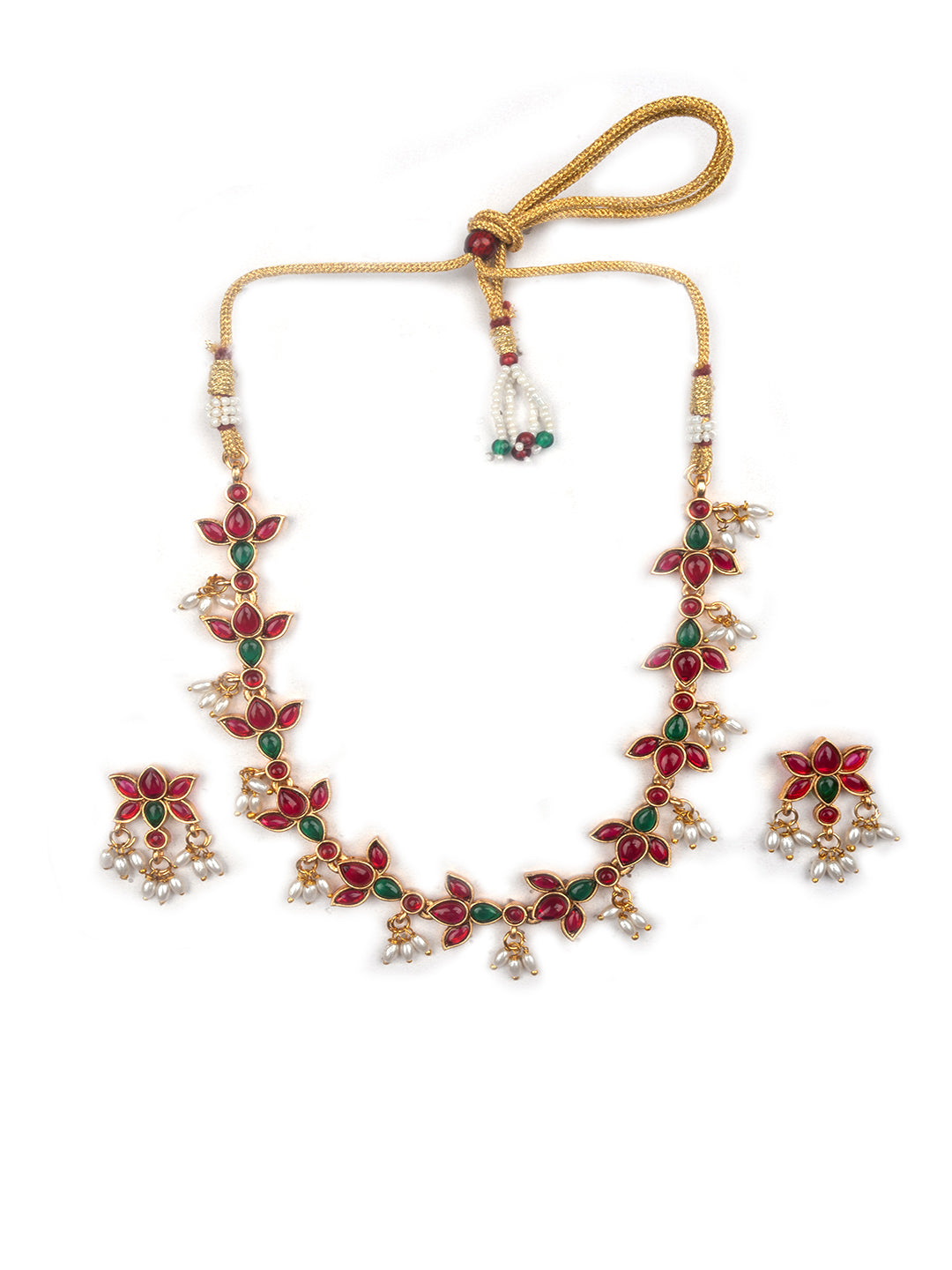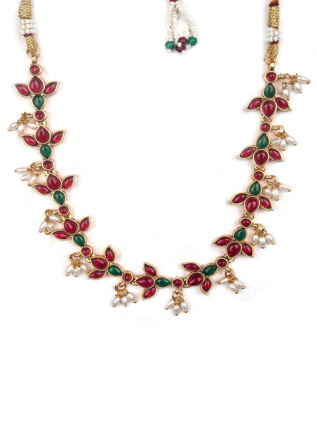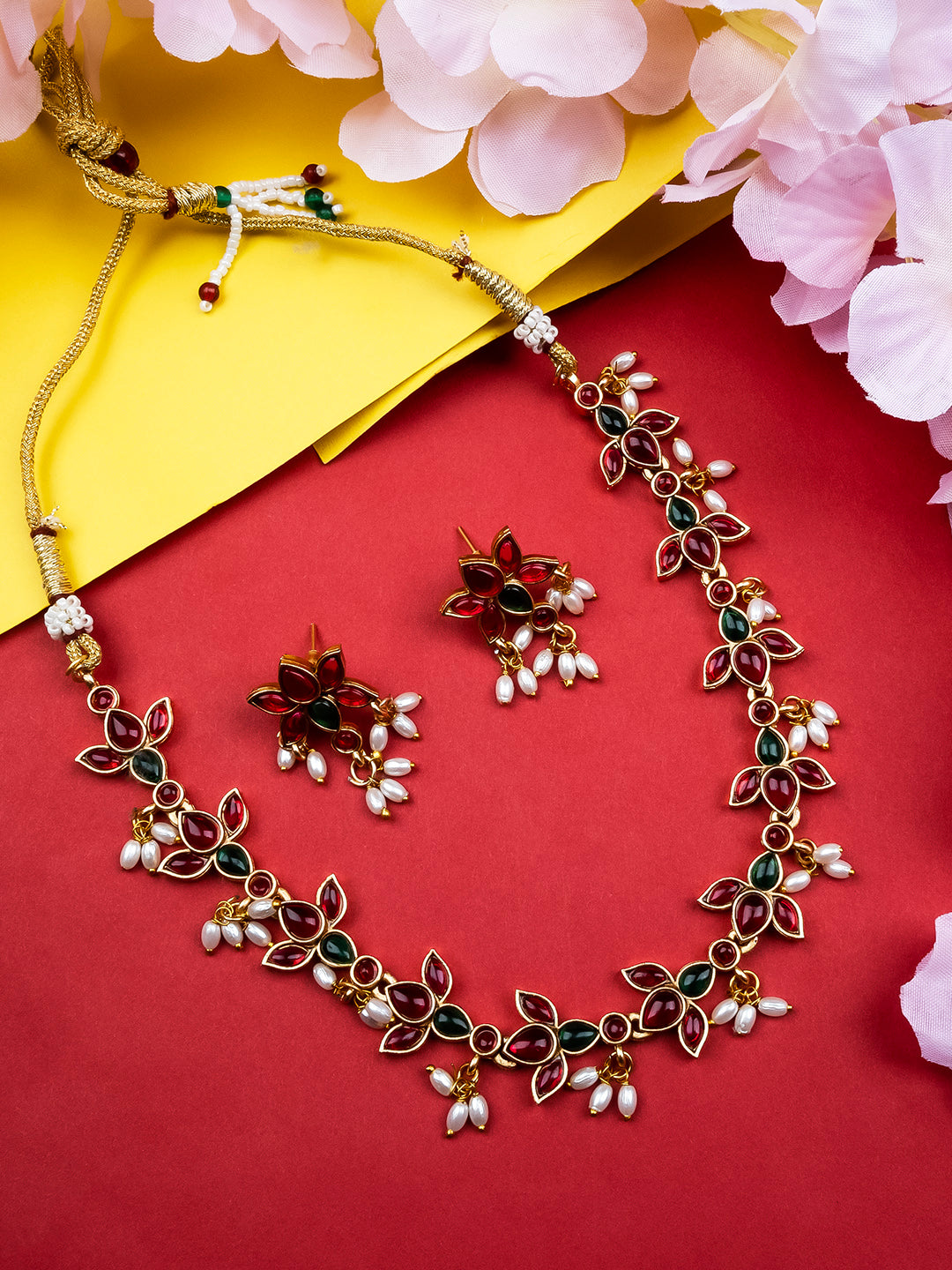 Elevate your elegance with StileAdda's Kempu-studded stylish necklace set. Crafted with intricate detailing and radiant stones, it's a perfect blend of tradition and contemporary charm.