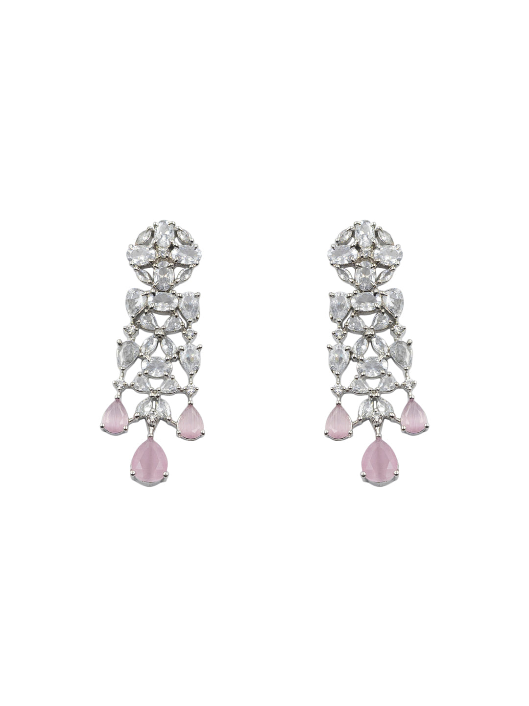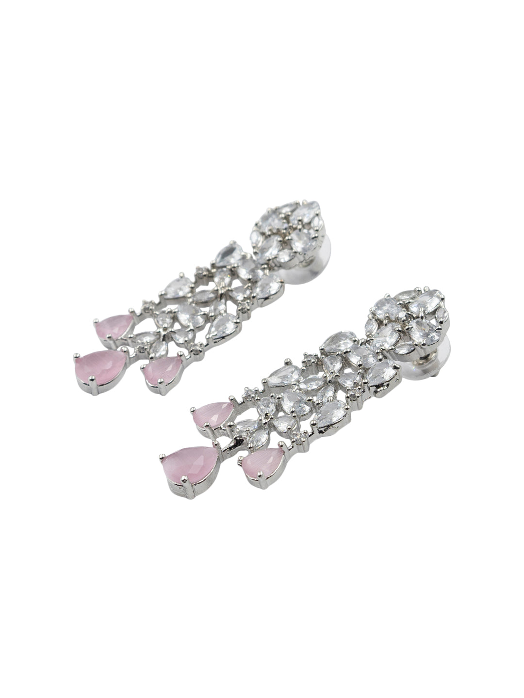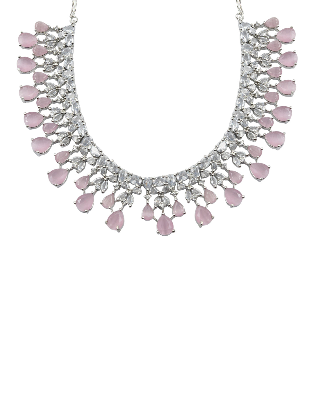 Silver Plated Pink AD and CZ Studded Flower Motif Bridal Necklace Set