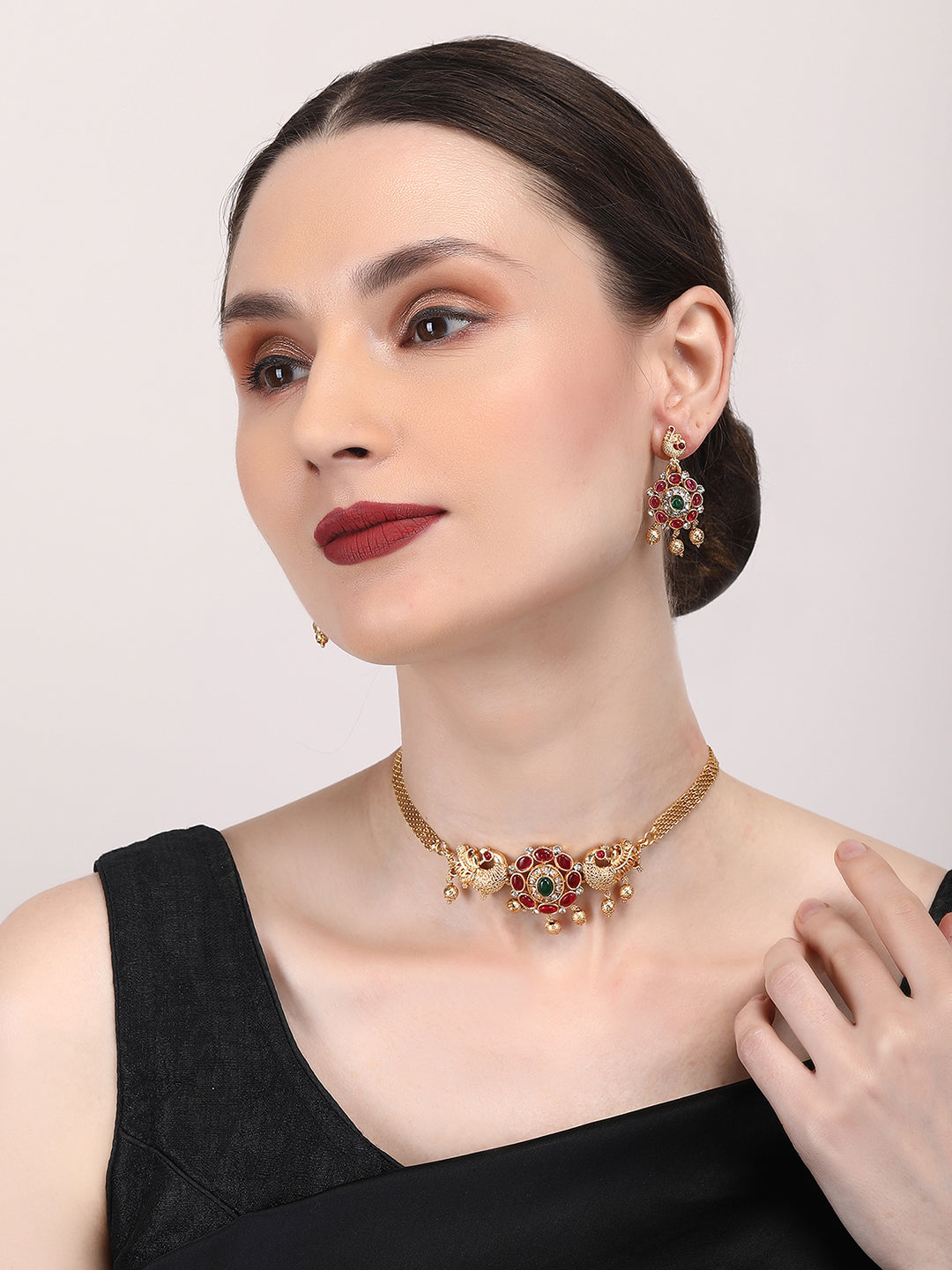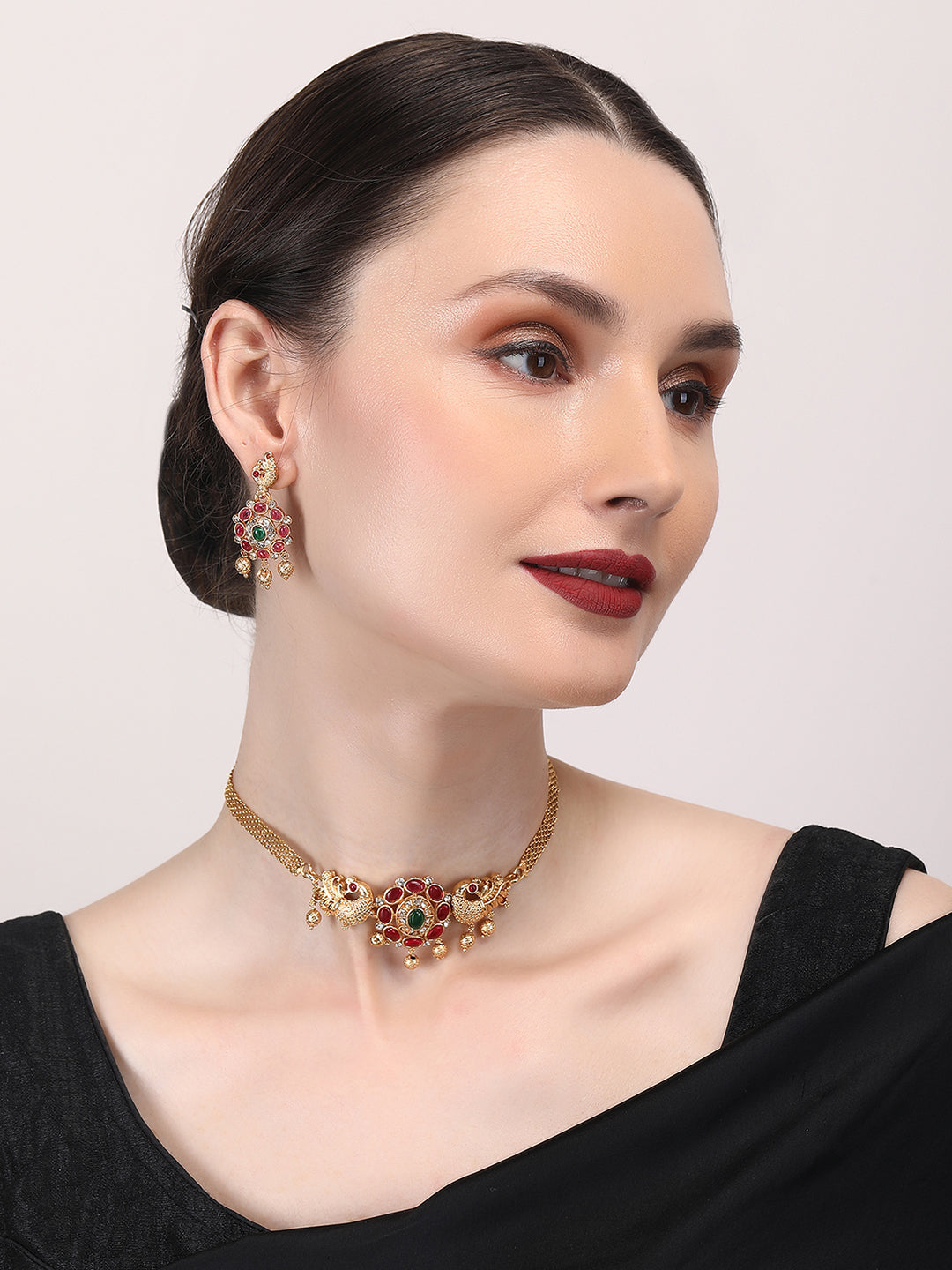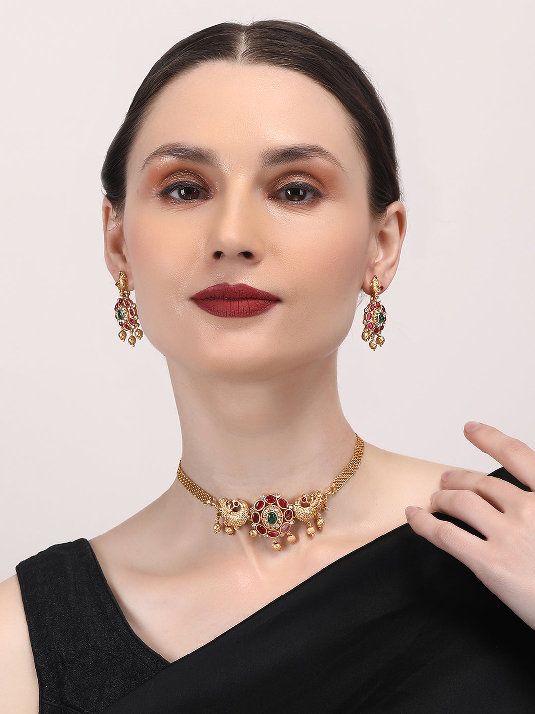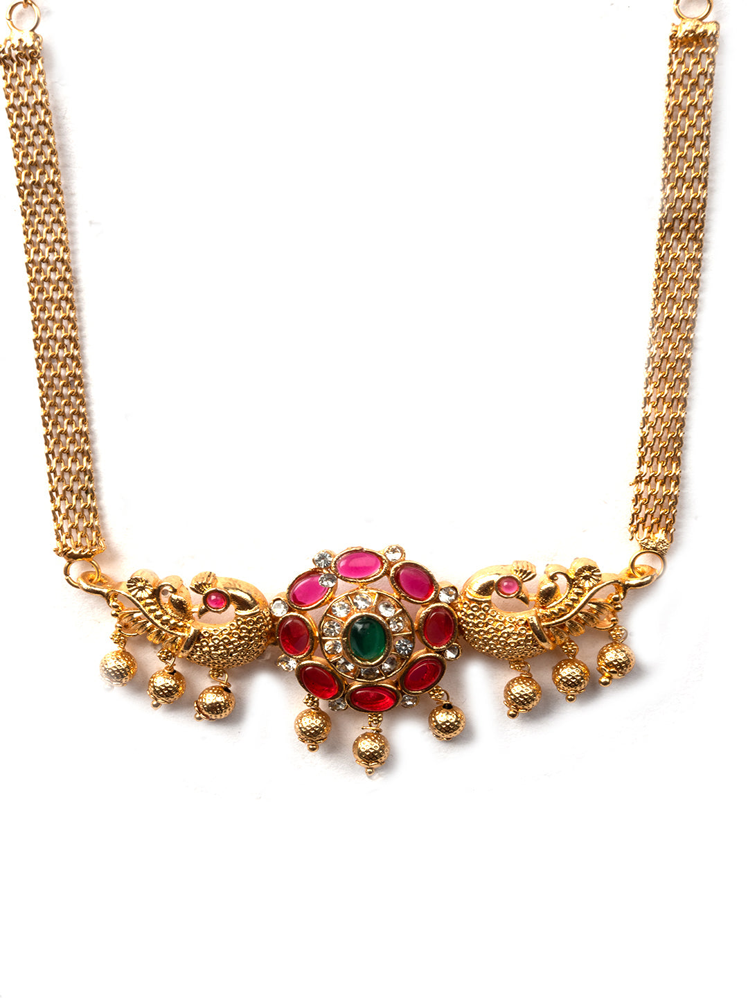 Elevate your style with StileAdda's stunning gold plated temple necklace set. Crafted with precision and adorned with intricate designs, this exquisite jewelry piece adds a touch of timeless elegance to any ensemble. Shop now for the perfect blend of tradition and sophistication.