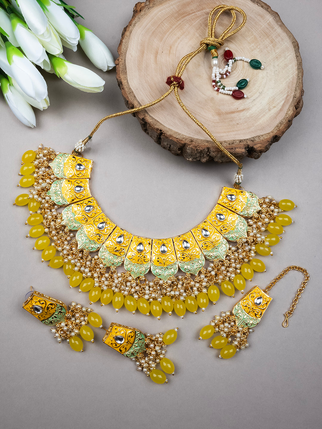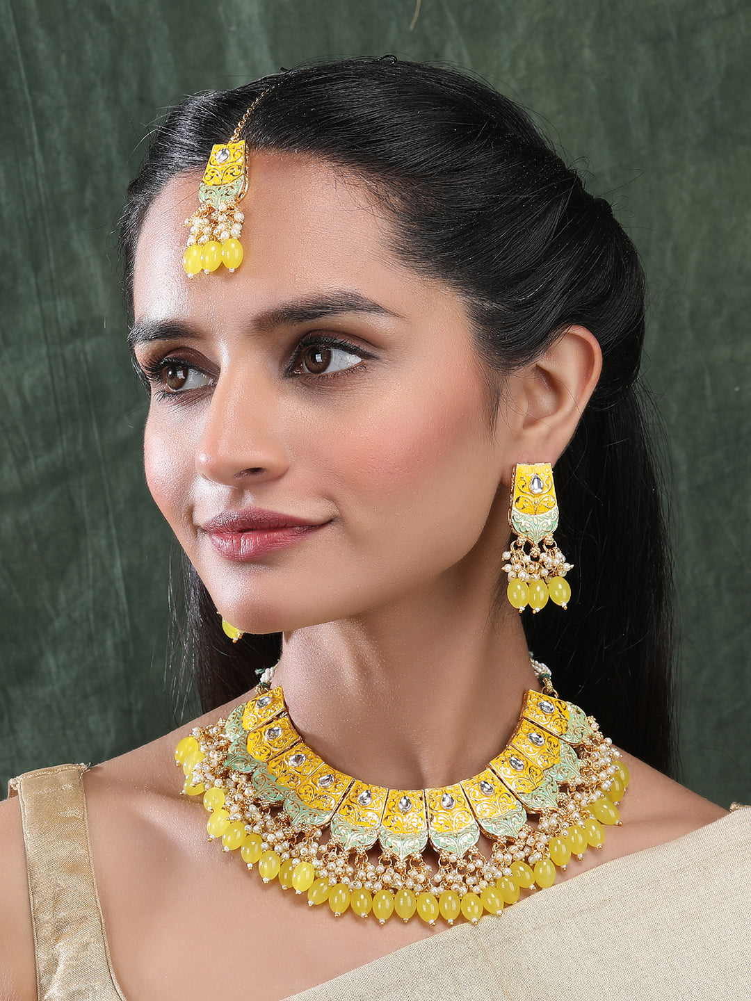 Versatile Kundan Meenakari Droplet Necklace Set