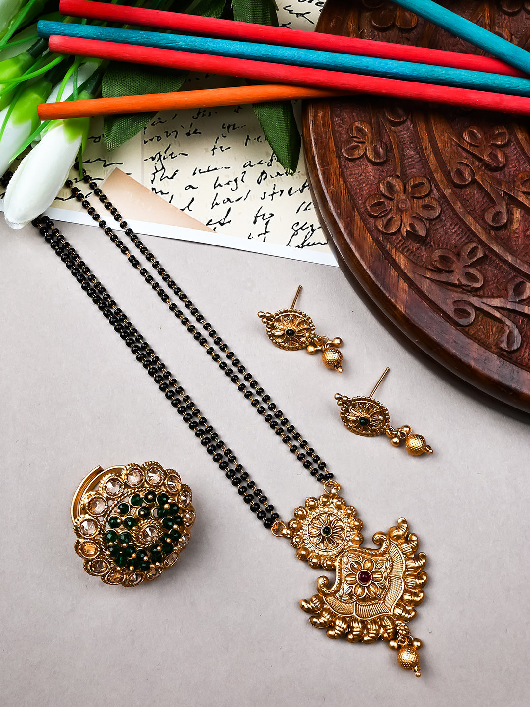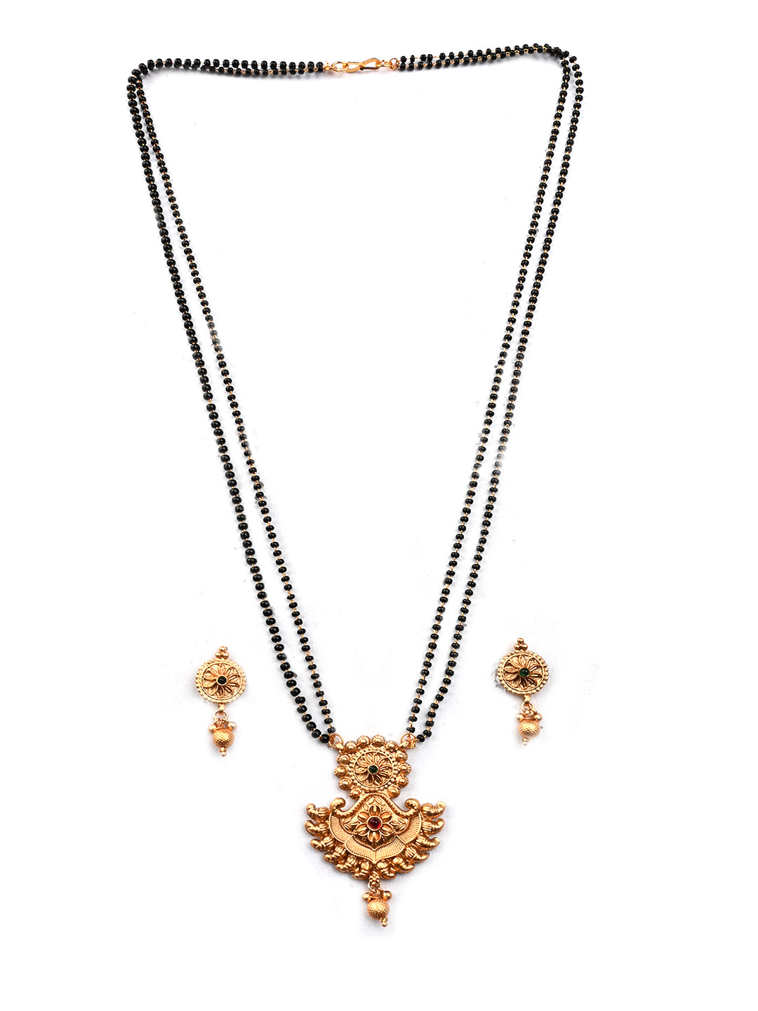 Adorn yourself with the exquisite Rajwadi Mangalsutra set with double line long black beads chain by StileAdda. This timeless piece blends traditional elegance with modern sophistication, featuring intricate designs and a lustrous finish, perfect for celebrating the beauty and grace of Indian heritage.