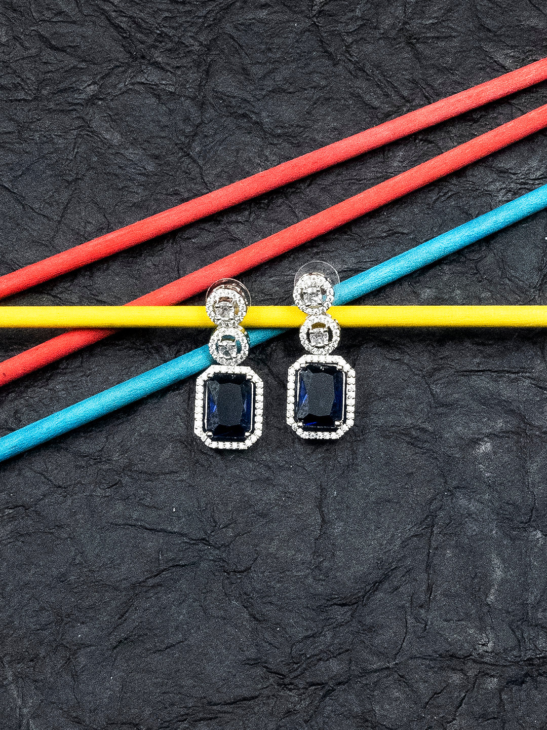 Silver Plated Minimalist Blue CZ Stud Earrings