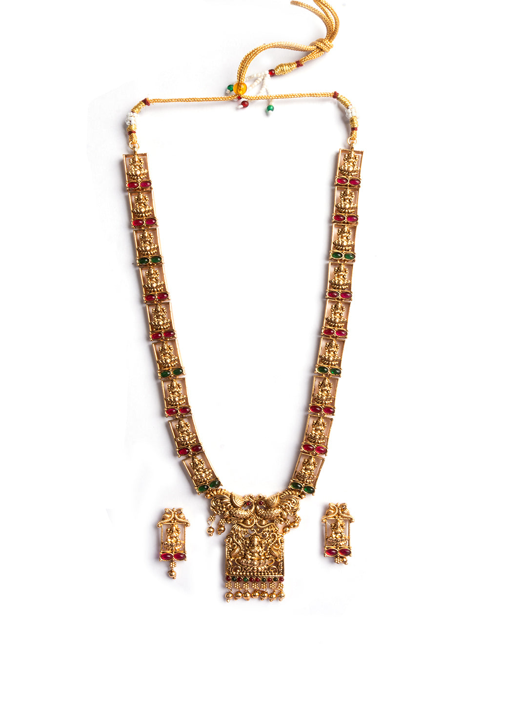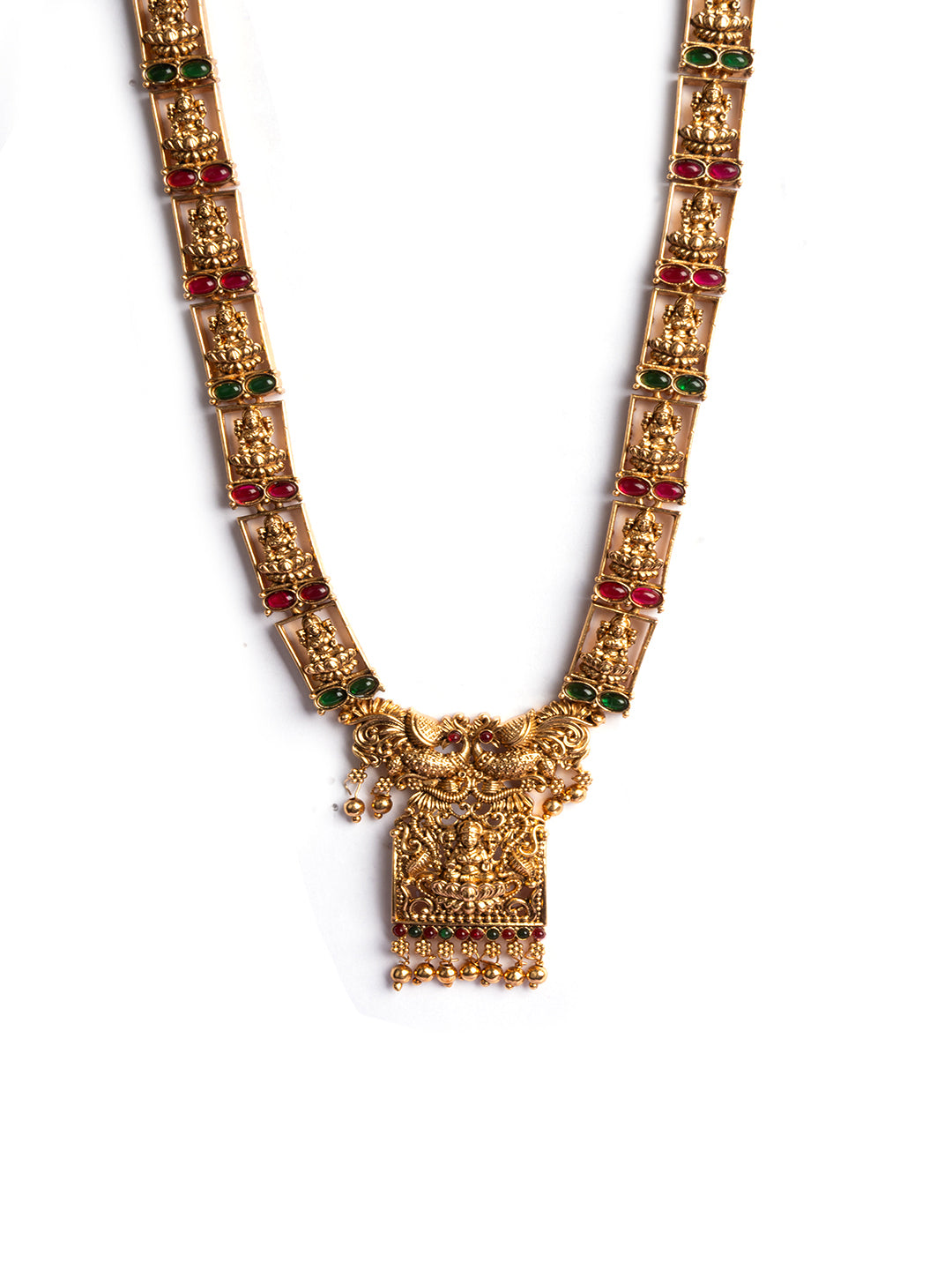 Embrace timeless elegance with this Antique Polish Long Lakshmi Haram Set by StileAdda, featuring intricately carved Lakshmi motifs and rich temple-style detailing. Ideal for weddings and festive occasions, this long haram adds grandeur to any traditional attire.