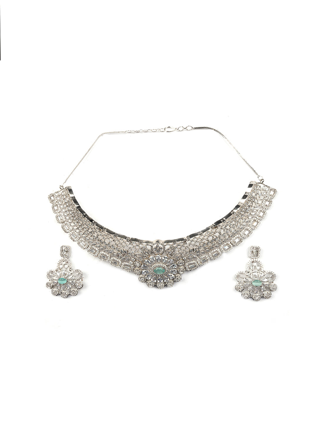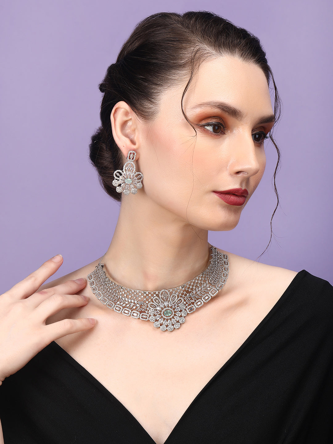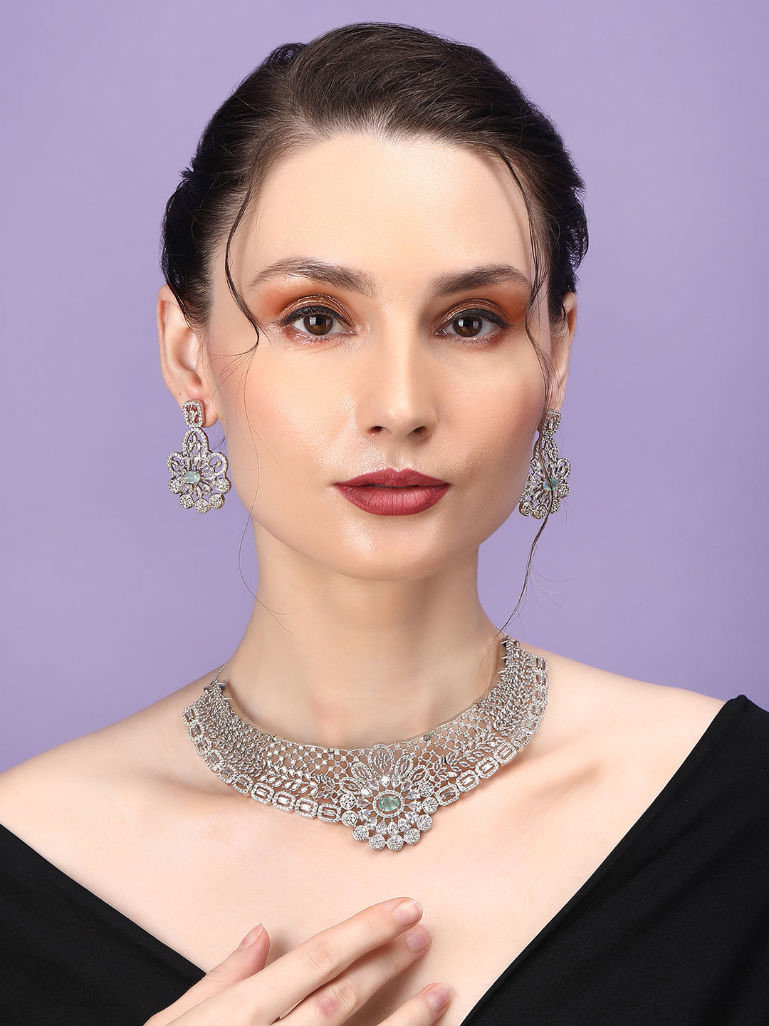 Step into the spotlight with the StileAdda's Designer AD Choker Set with Earrings. Adorned with sparkling Americandiamonds, this exquisite set combines elegance with contemporary design. Perfect for any special occasion, it adds a touch of sophistication and brilliance to your ensemble.